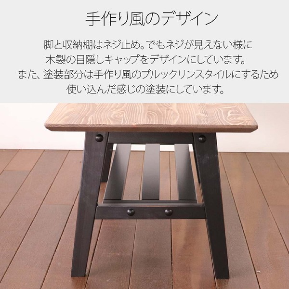 ヴィンテージテイストが漂うインダストリアルスタイルのなかに、 ほんのりとやわらかいナチュラルな雰囲気を取り入れた新感覚スタイル。天板はパイン無垢材にオイル塗装で仕上げた風合い豊かなスツール。脚はヴィンテージ感のあるかすれた塗装を表現しています。天板下の固定棚には雑誌や小物も収納できます